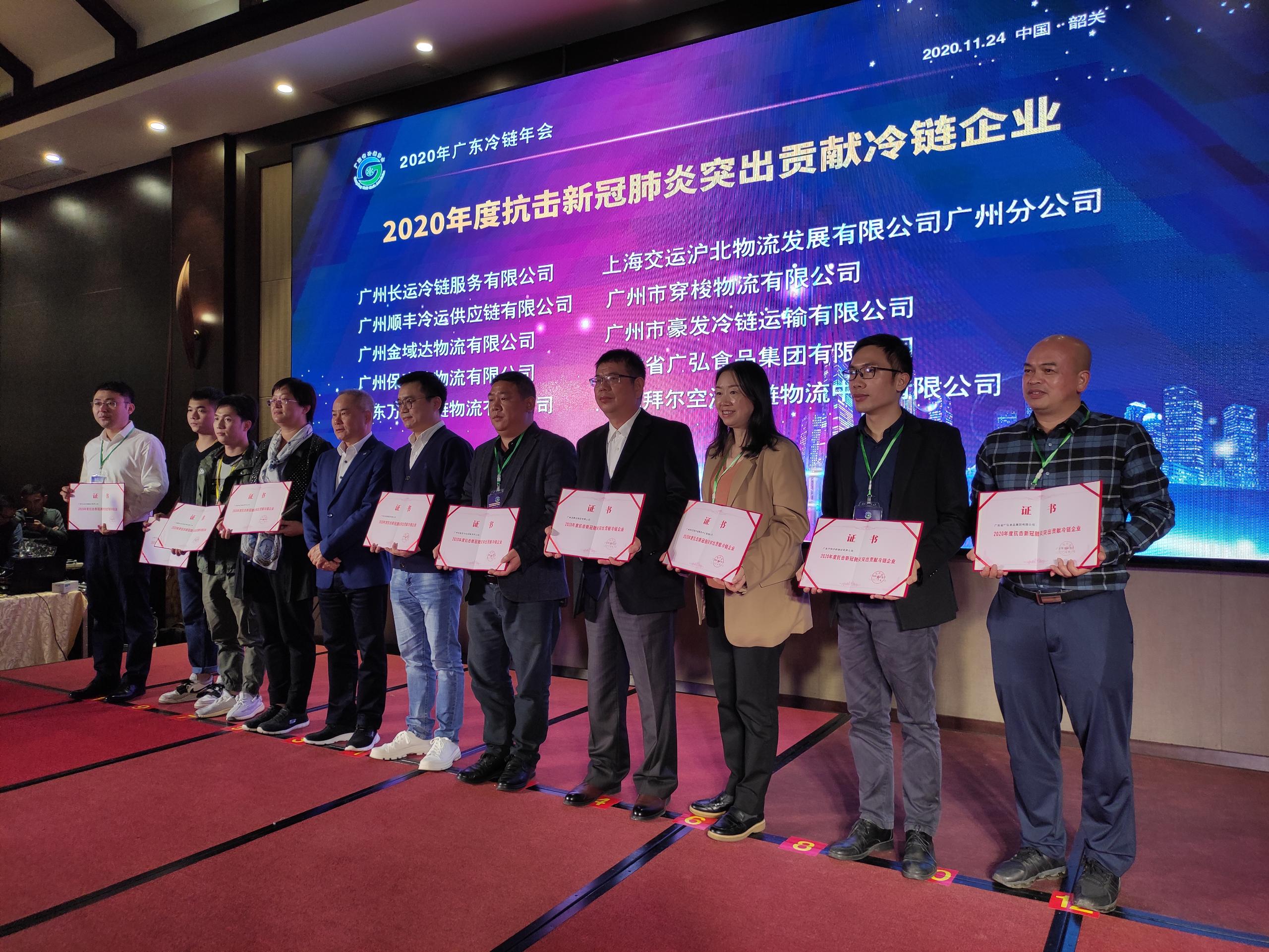 11月24~25日,廣東省冷鏈年會(huì)在韶關(guān)召開(kāi),表彰會(huì)上拜爾空港冷鏈再獲評(píng)廣州市(2020年度)城市冷鏈配送企業(yè), 成為自2018年以來(lái)連續(xù)3年的廣州市城市冷鏈配送企業(yè)。