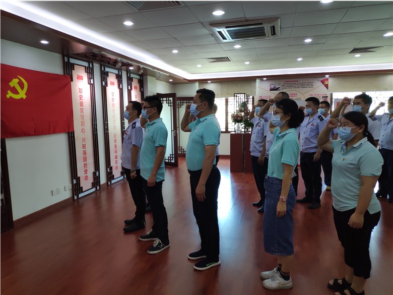 在慶祝中國共產(chǎn)黨成立101周年、喜迎二十大召開之際,7月11日,獅嶺稅務(wù)所黨支部與廣州拜爾冷鏈聚氨酯科技有限公司黨支部聯(lián)合開展“共建聚合力 奮進(jìn)新征程 喜迎二十大”紅聯(lián)共建主題黨日活動(dòng),花都區(qū)稅務(wù)局黨委委員、總會(huì)計(jì)師陳戈云,獅嶺稅務(wù)所黨支部書記、所長巫廣安及黨支部全體黨員,拜爾冷鏈黨支部書記譚漢輝、拜爾冷鏈董事長王宏及黨支部全體黨員共同參加會(huì)議。會(huì)議開始后,首先由花都區(qū)稅務(wù)局黨委委員、總會(huì)計(jì)師陳戈云帶領(lǐng)黨員們?cè)邗r艷的黨旗下重溫入黨誓詞。
