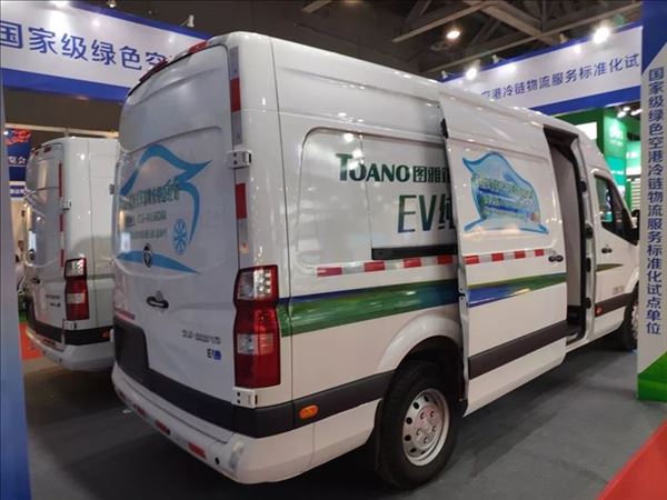■王宏董事長向嘉賓介紹城市物流配送EV純電動福田圖雅諾冷藏車型