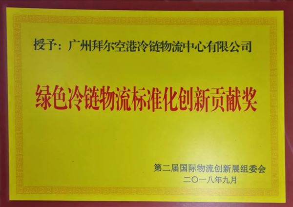榮獲組委會頒發(fā)的“綠色冷鏈物流標(biāo)準(zhǔn)化創(chuàng)新貢獻(xiàn)獎”。